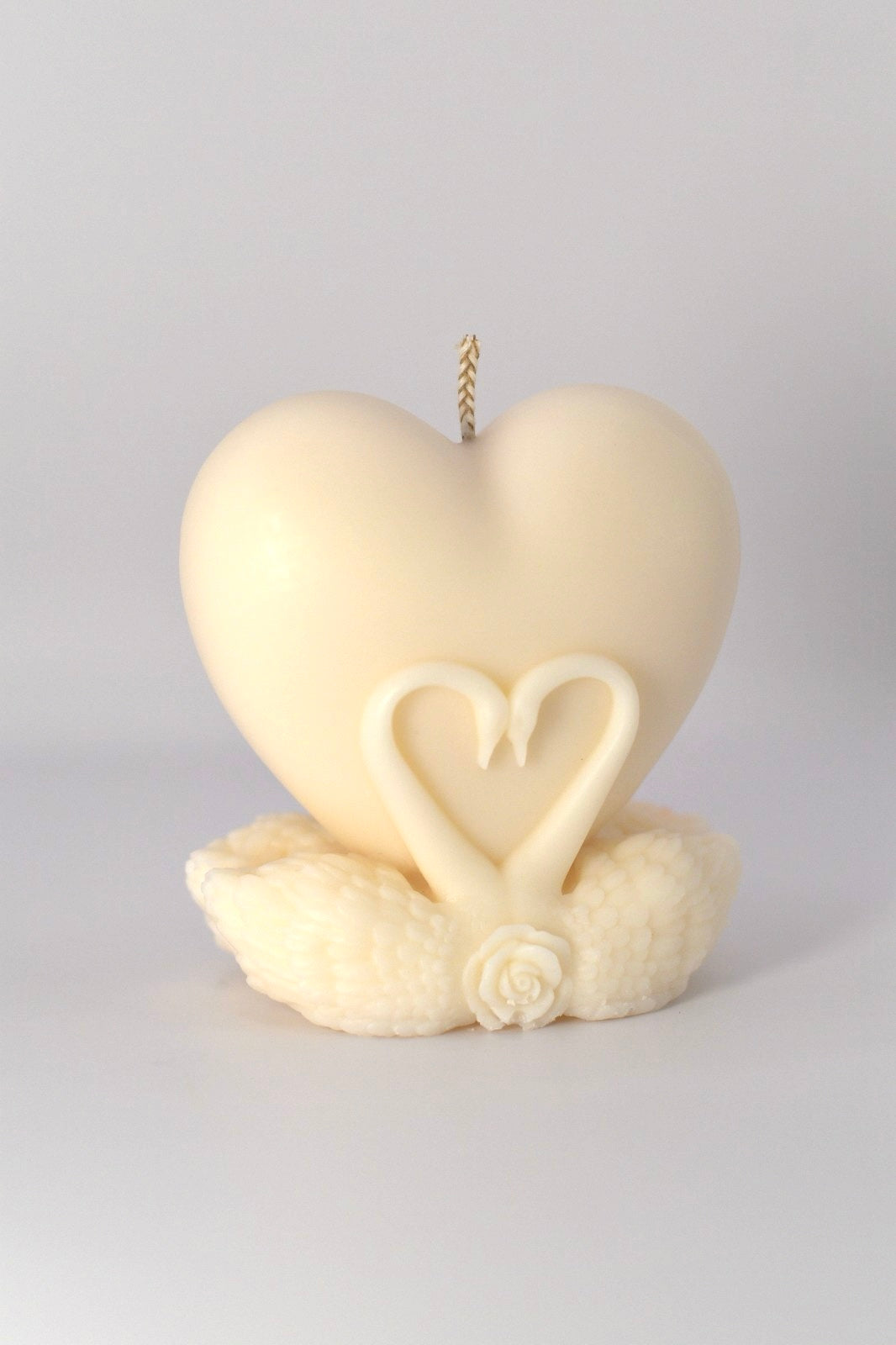 A timeless symbol of devotion, the Eternal Love candle captures the beauty of two souls intertwined. Handcrafted with 100% natural soy wax, this romantic piece features a heart resting upon swans forming a heart, delicately detailed with a rose — a true celebration of love, unity, and forever.